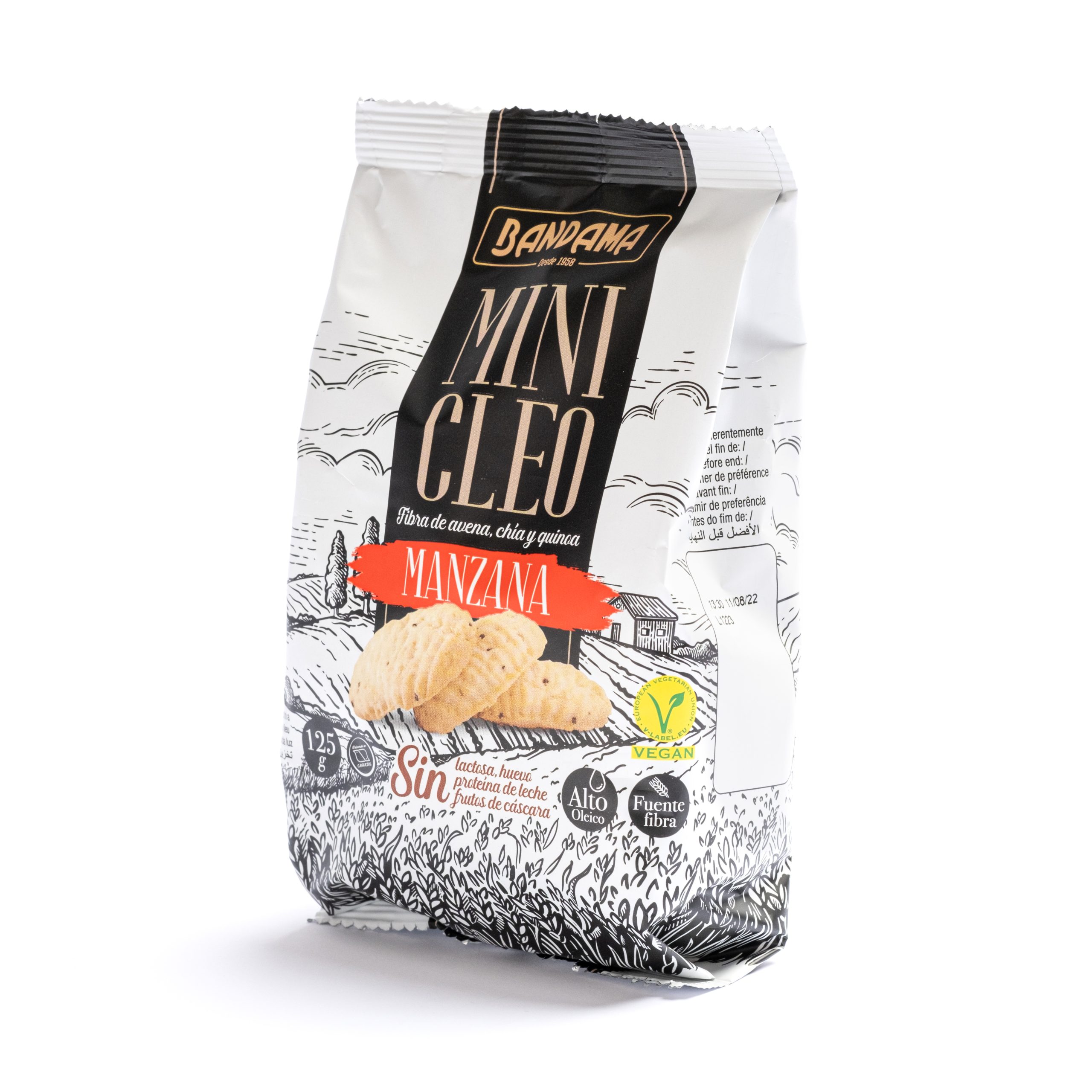 INGREDIENTES: Harina de trigo, azúcar, aceite vegetal de girasol (alto oleico) 11,3 %, manzana en escamas deshidratada 1,6 %, fibra de avena 2,5 %, semillas de chía 1,7 %, semillas de quinoa 1,7 %, dextrosa, gasificantes (bicarbonato sódico y bicarbonato amónico), sal y aromas.